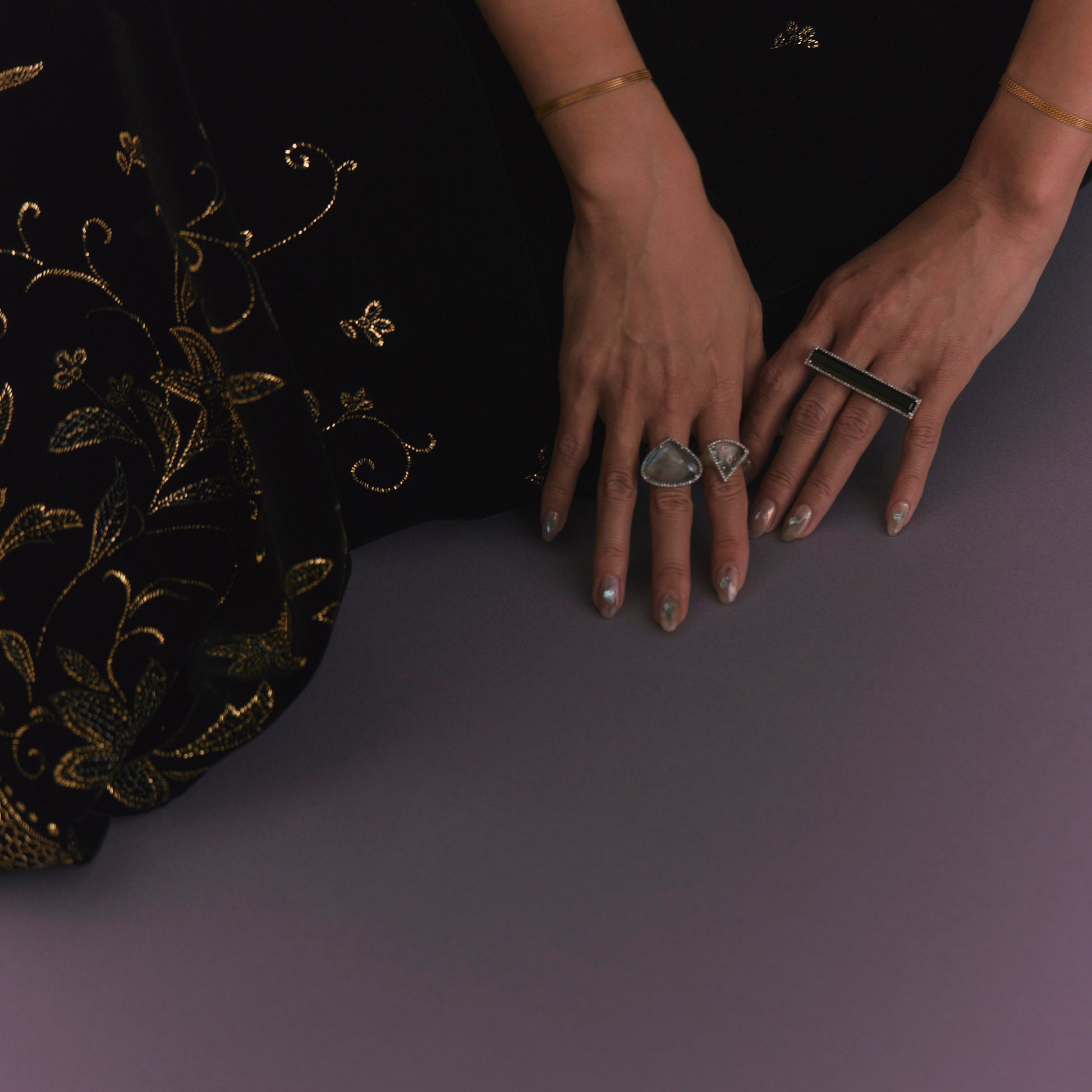 長年眠っていたデッドストックのストーンを、日本国内の職人の手によりモダンなカットに擦り上げました。パヴェダイヤモンドで取り巻き、爪部分にオキシダイズド加工をほどこすことでヴィンテージピースのような風合いに。丸みを帯びたボリュームシェイプのリングに成形しました。地金はリサイクルされたSilver925を使用、マットフィニッシュに柔らかな光沢を残しました。一点ものとなります。
