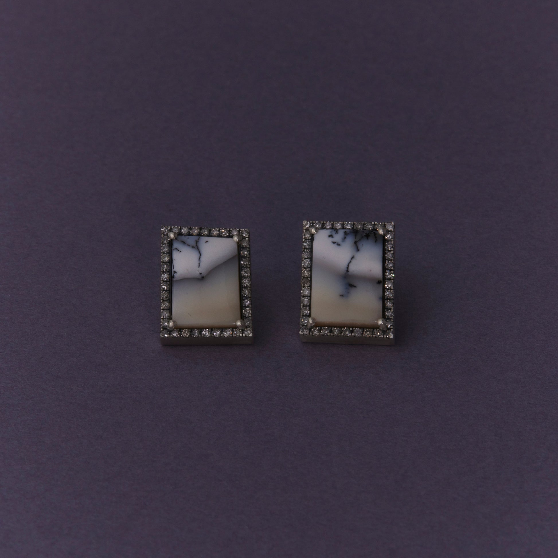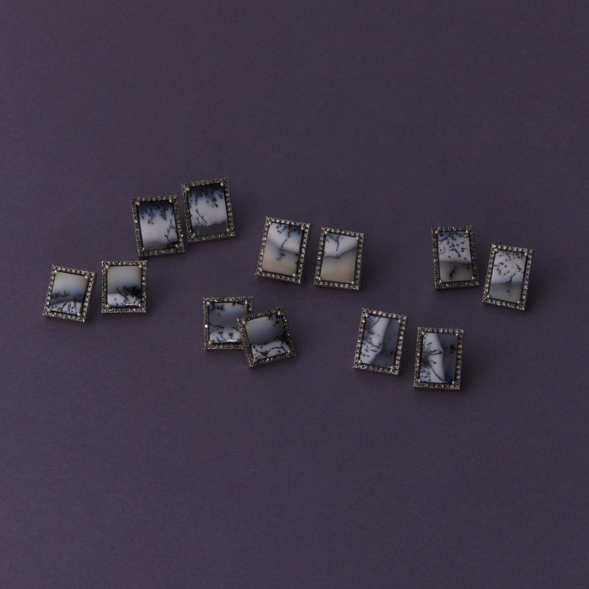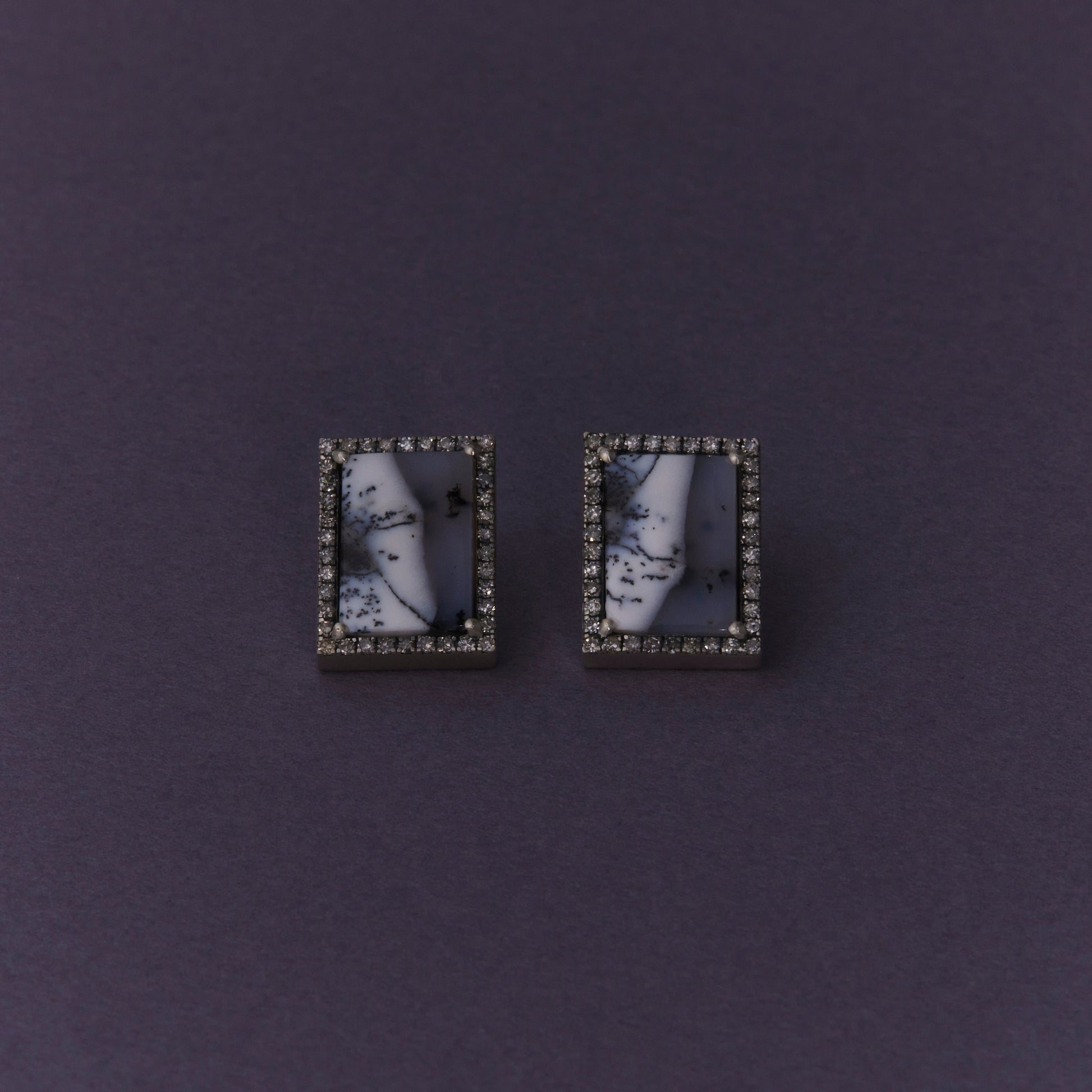 長年眠っていたデッドストックのストーンを使用しています。雪景色を映すデンドライトオパールをパヴェダイヤモンドで取り巻き、爪部分にオキシダイズド加工をほどこすことでヴィンテージピースのような風合いに。地金はリサイクルされたSilver925を使用、マットフィニッシュに柔らかな光沢を残しました。
