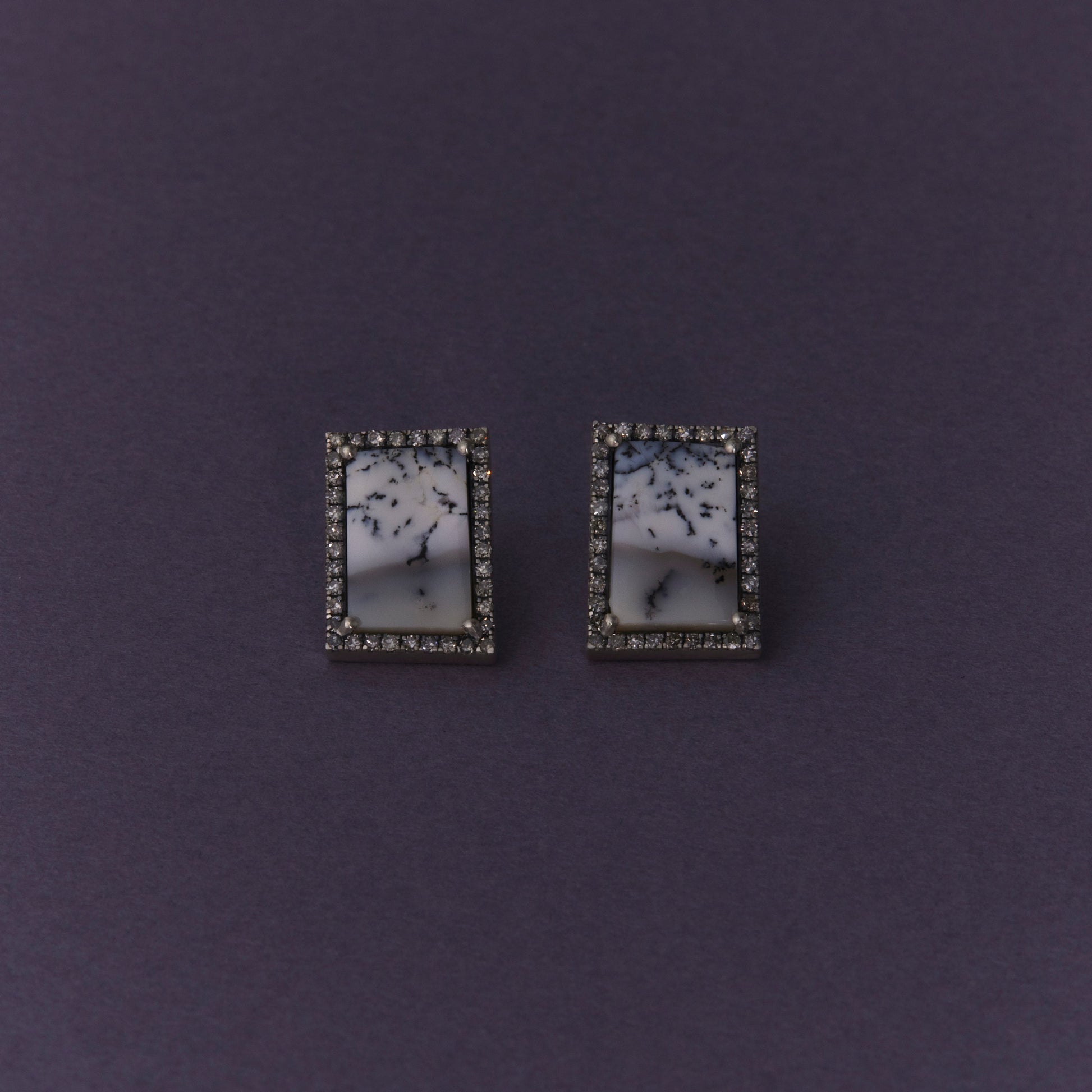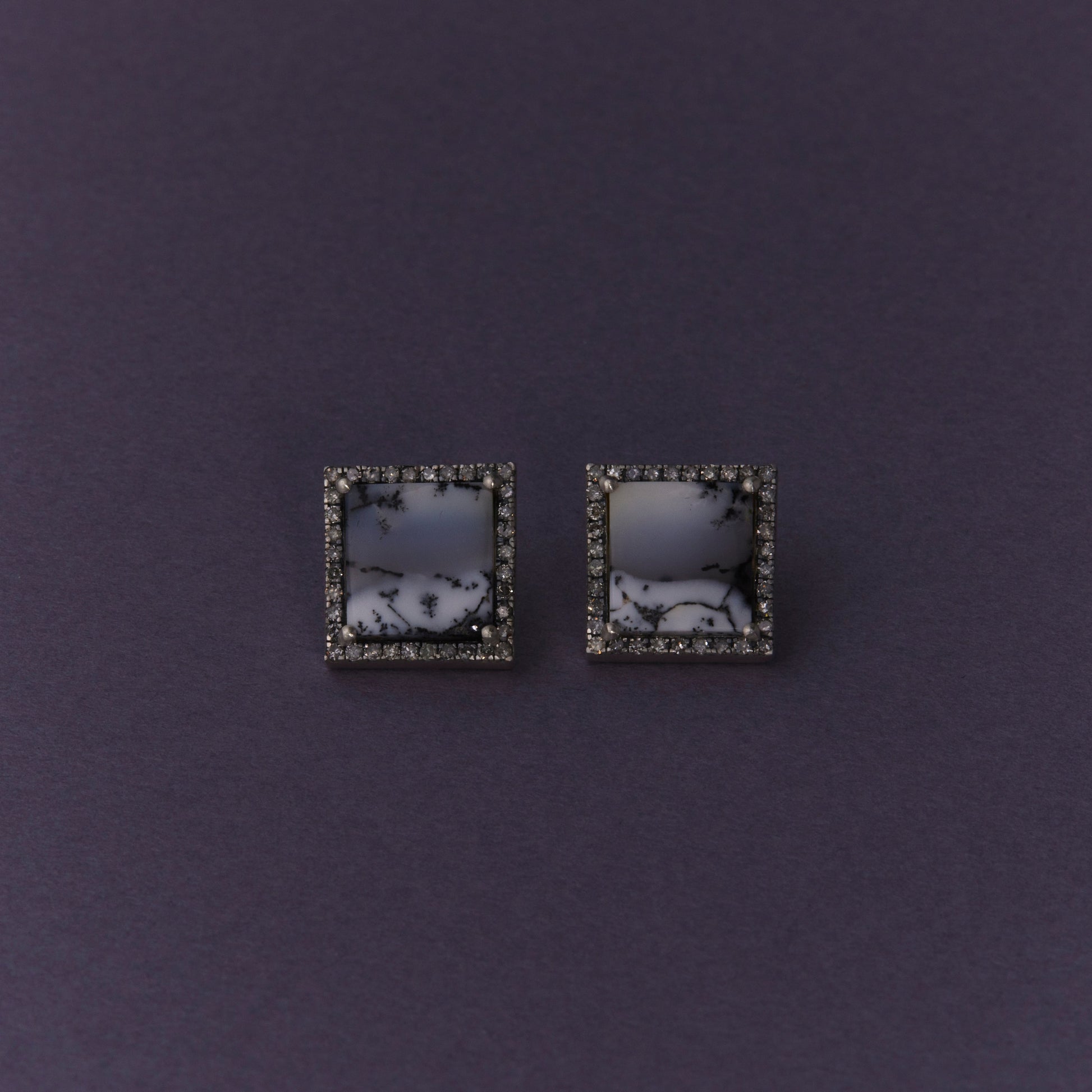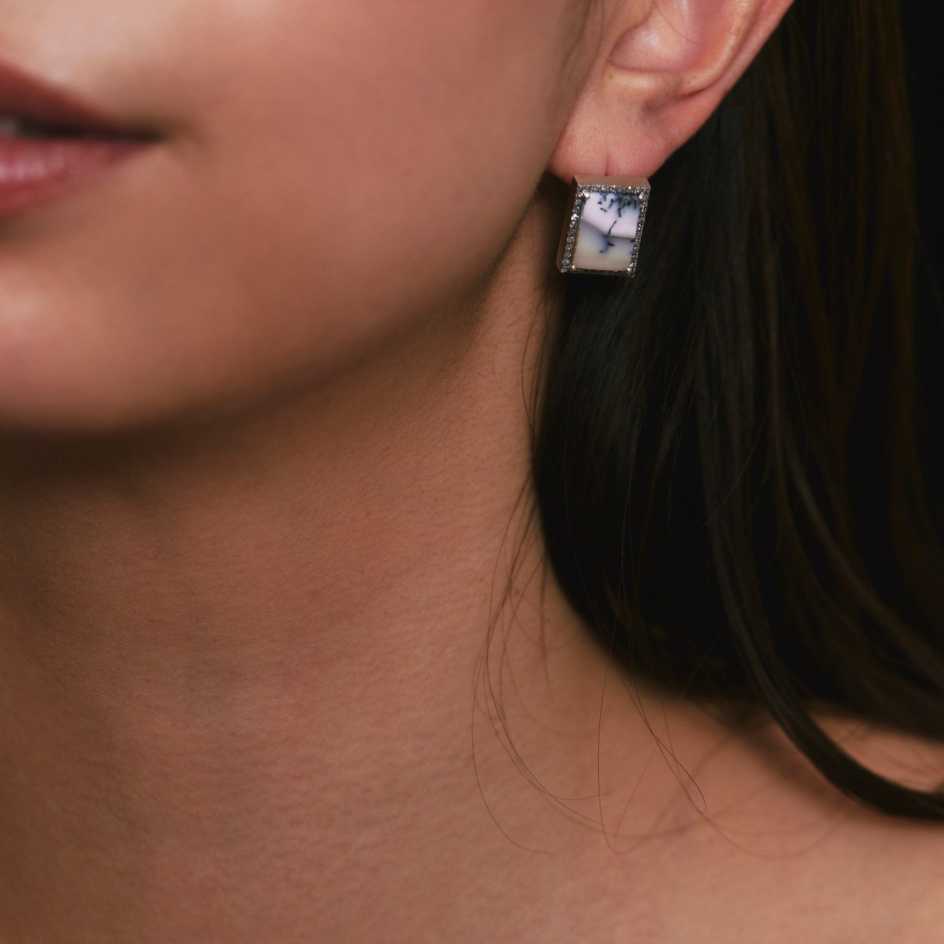 長年眠っていたデッドストックのストーンを使用しています。雪景色を映すデンドライトオパールをパヴェダイヤモンドで取り巻き、爪部分にオキシダイズド加工をほどこすことでヴィンテージピースのような風合いに。地金はリサイクルされたSilver925を使用、マットフィニッシュに柔らかな光沢を残しました。