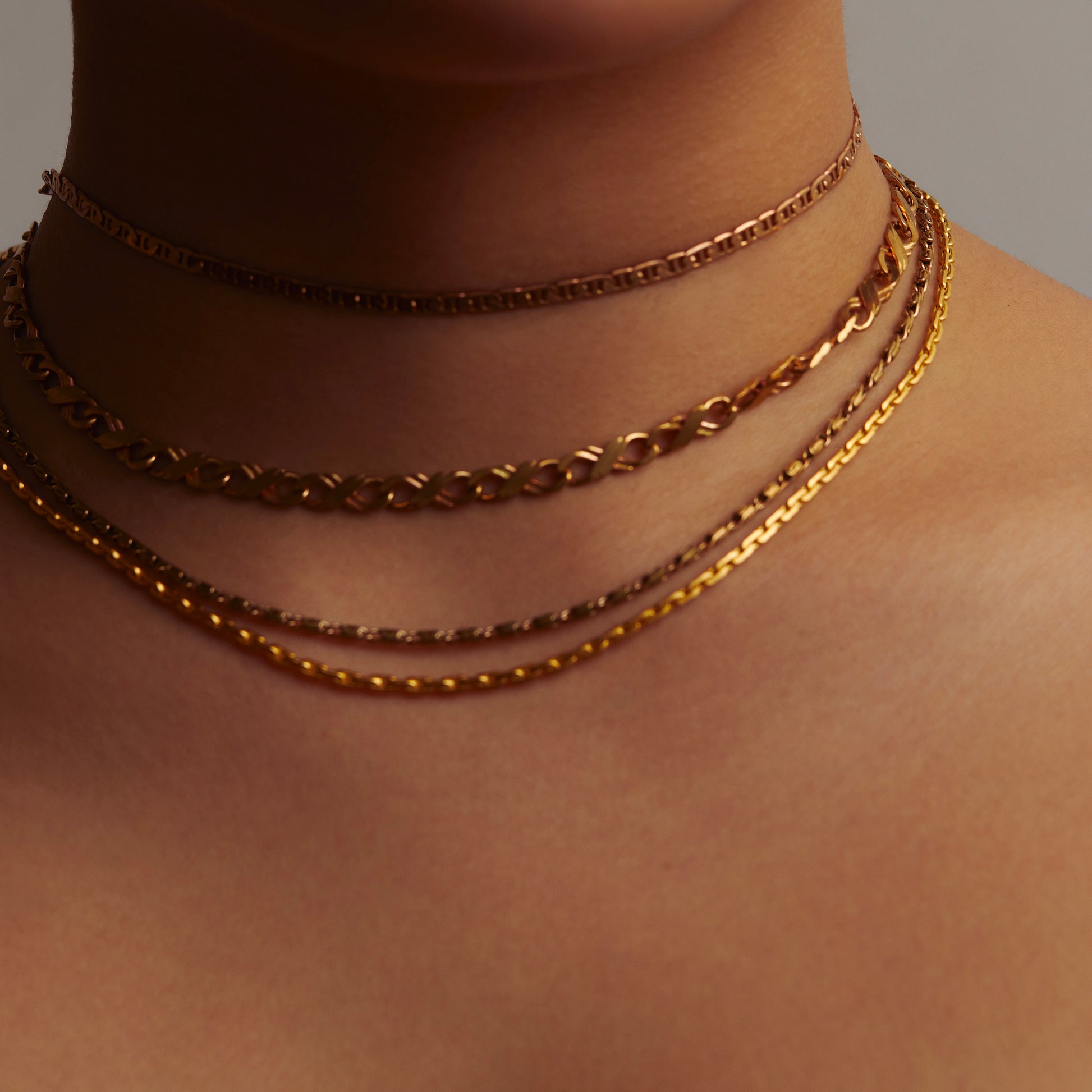 A necklace made from vintage brass chains produced in the 80's. The delicate goldsmith-like filigree chain has an airy feel not found in modern off-the-shelf chains.