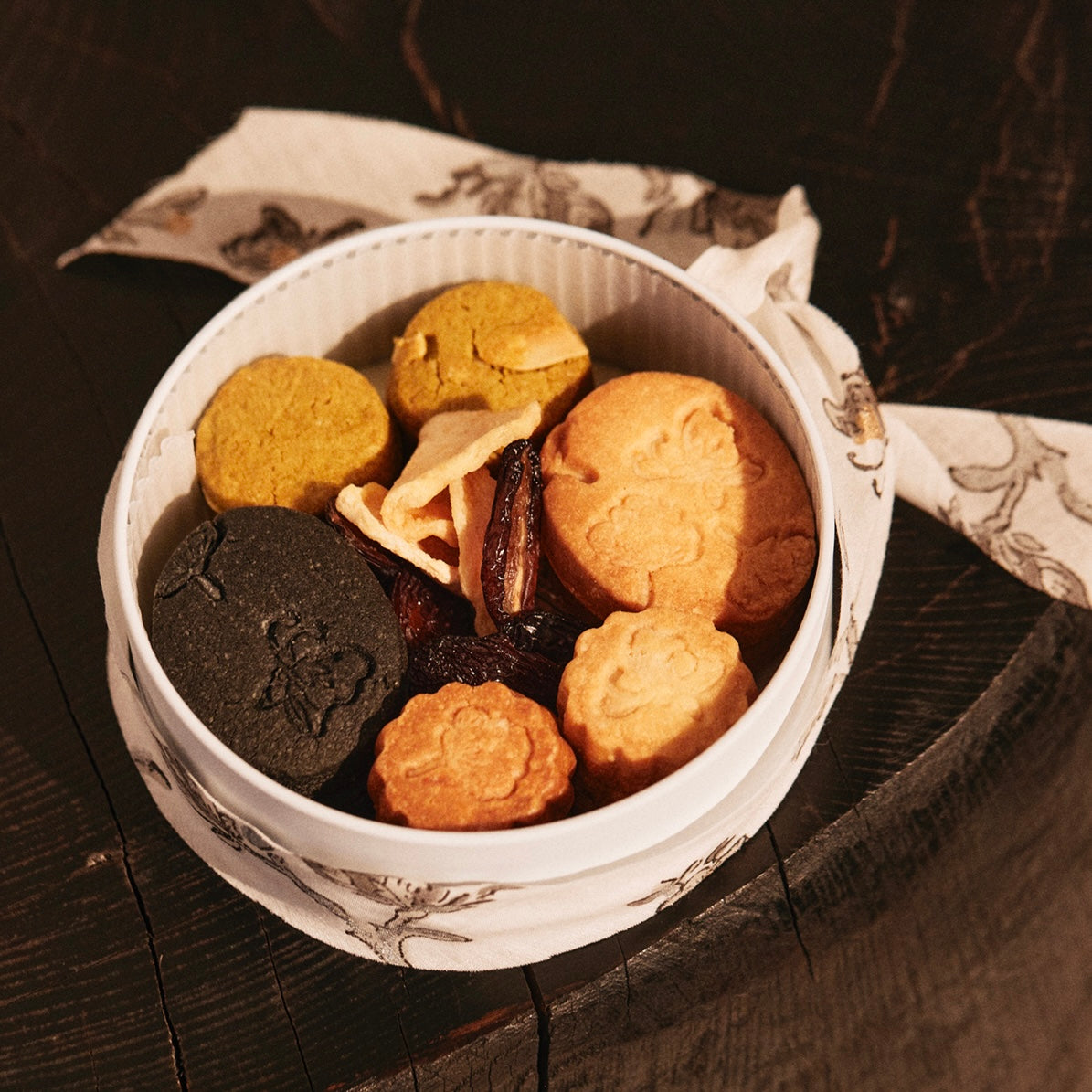 We asked Chitosaji to emboss the new "Nature Cookies" and "Bamboo Cookies" made with bamboo charcoal. The set also includes luxurious "Pistachio Cookies" and semi-dried dried fruits that are locally produced and locally consumed.