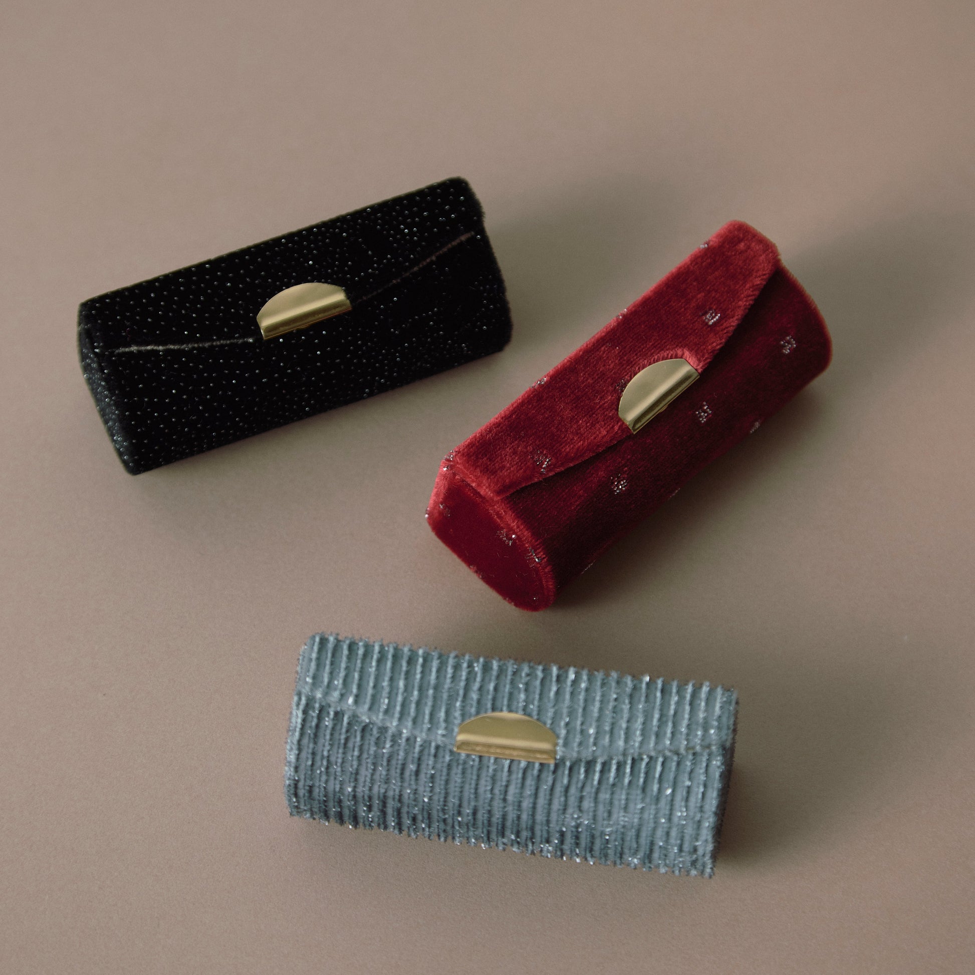 天鵞絨(ビロード)発祥の地であった西陣で、 今なお天鵞絨を専門に製造し続けている唯一の企業、杣長(そまちょう)。 1970s-1980sの時代を象徴する、麗々しいアーカイブの数々。貴重な技術を後世へと受け継いでいってもらいたい、そんな思いを込め、デッドストックのベルベット生地を活用したリングケースを制作いたしました。