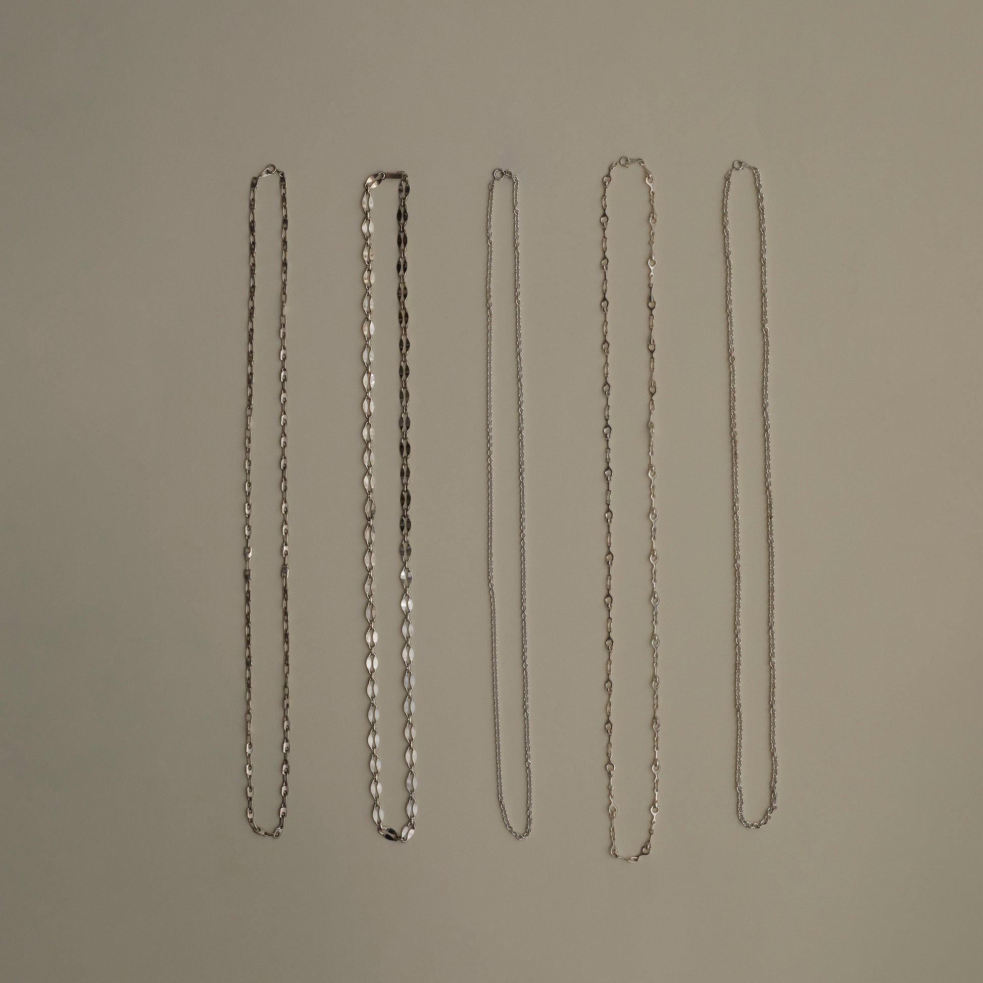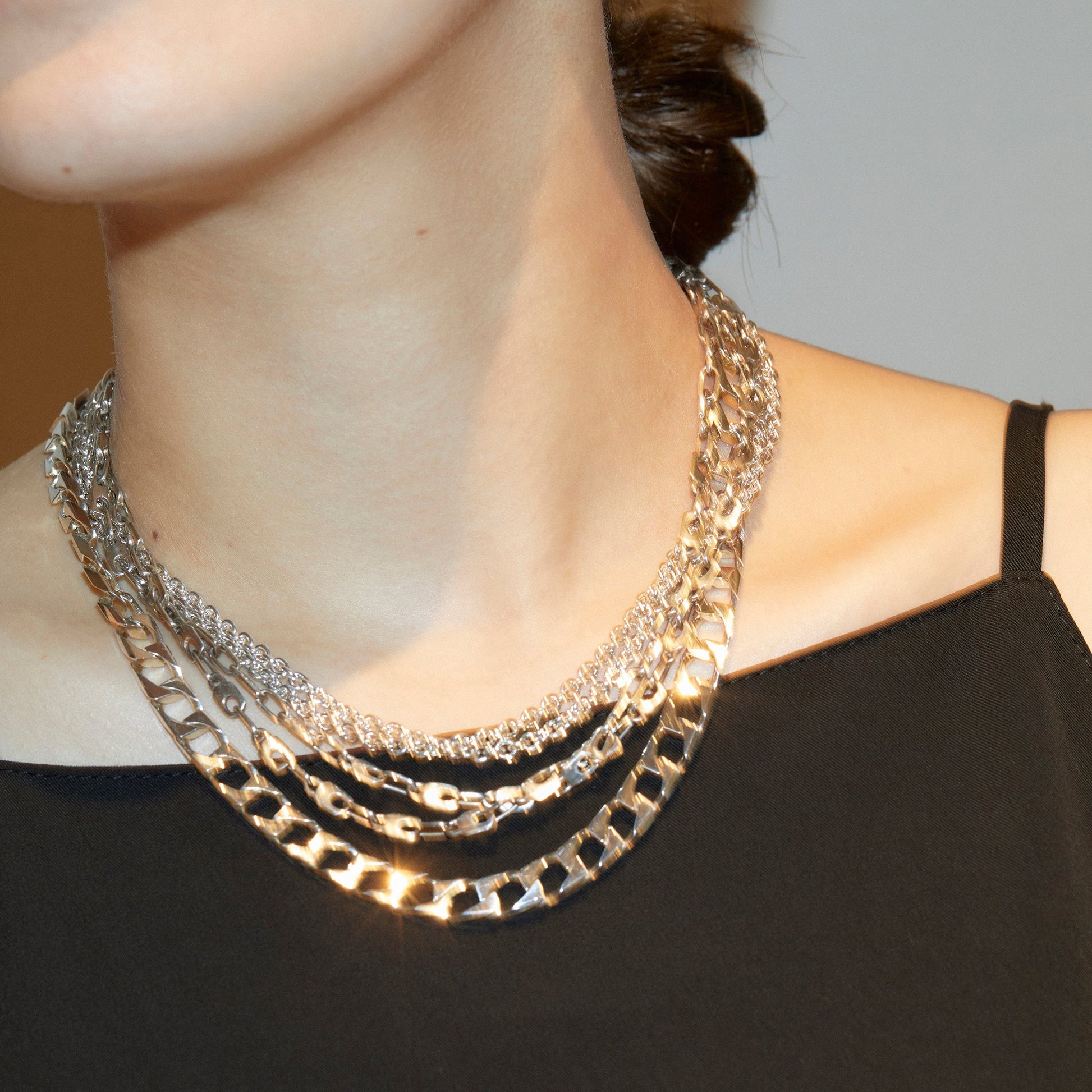 ‘70s良質な日本製のデッドストックシルバーチェーン。少しボリュームのある、丸みを帯びたケーブルチェーンのロングネックレス。
