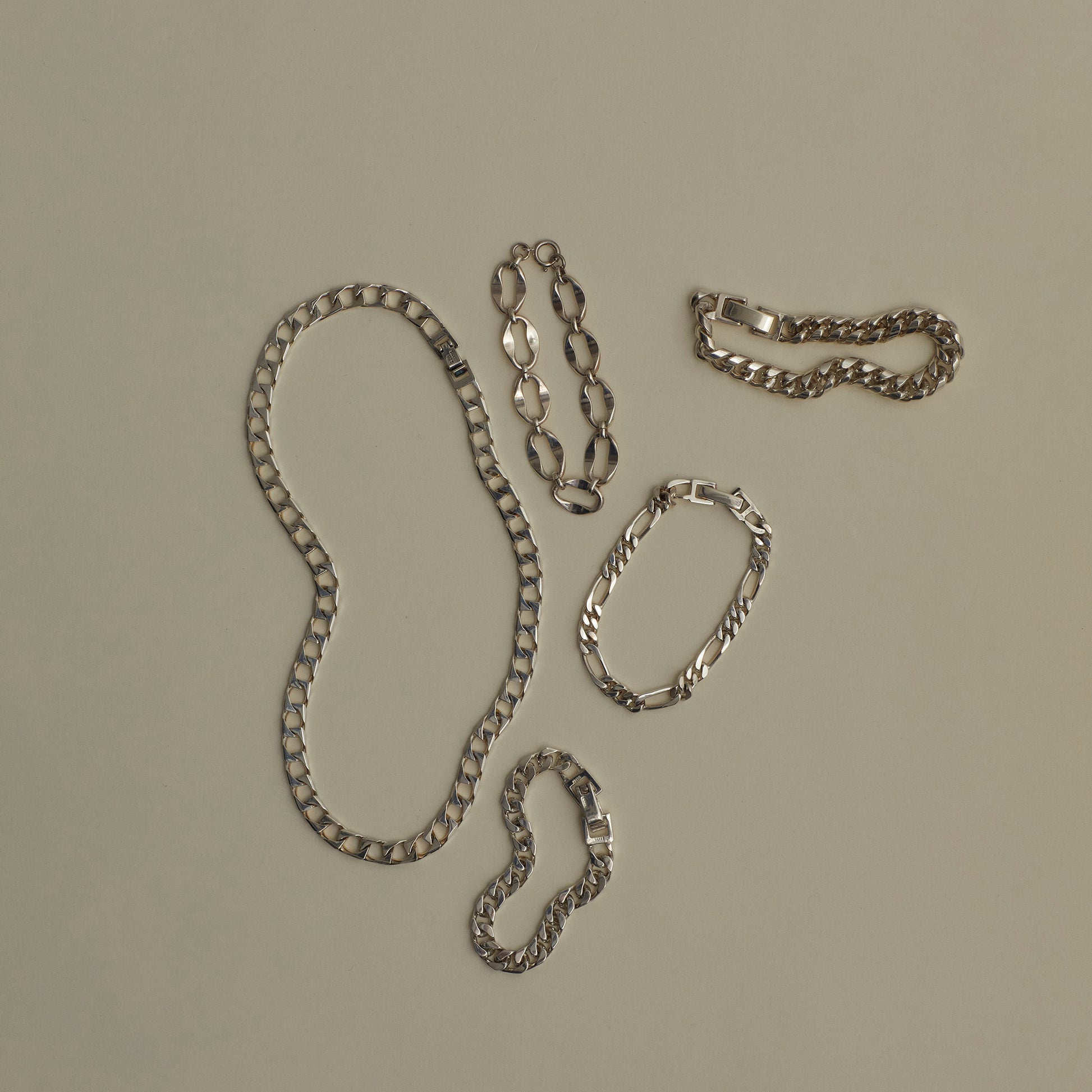 ‘70s良質な日本製のデッドストックシルバーチェーン。モダンな印象のカーブチェーンのブレスレット。