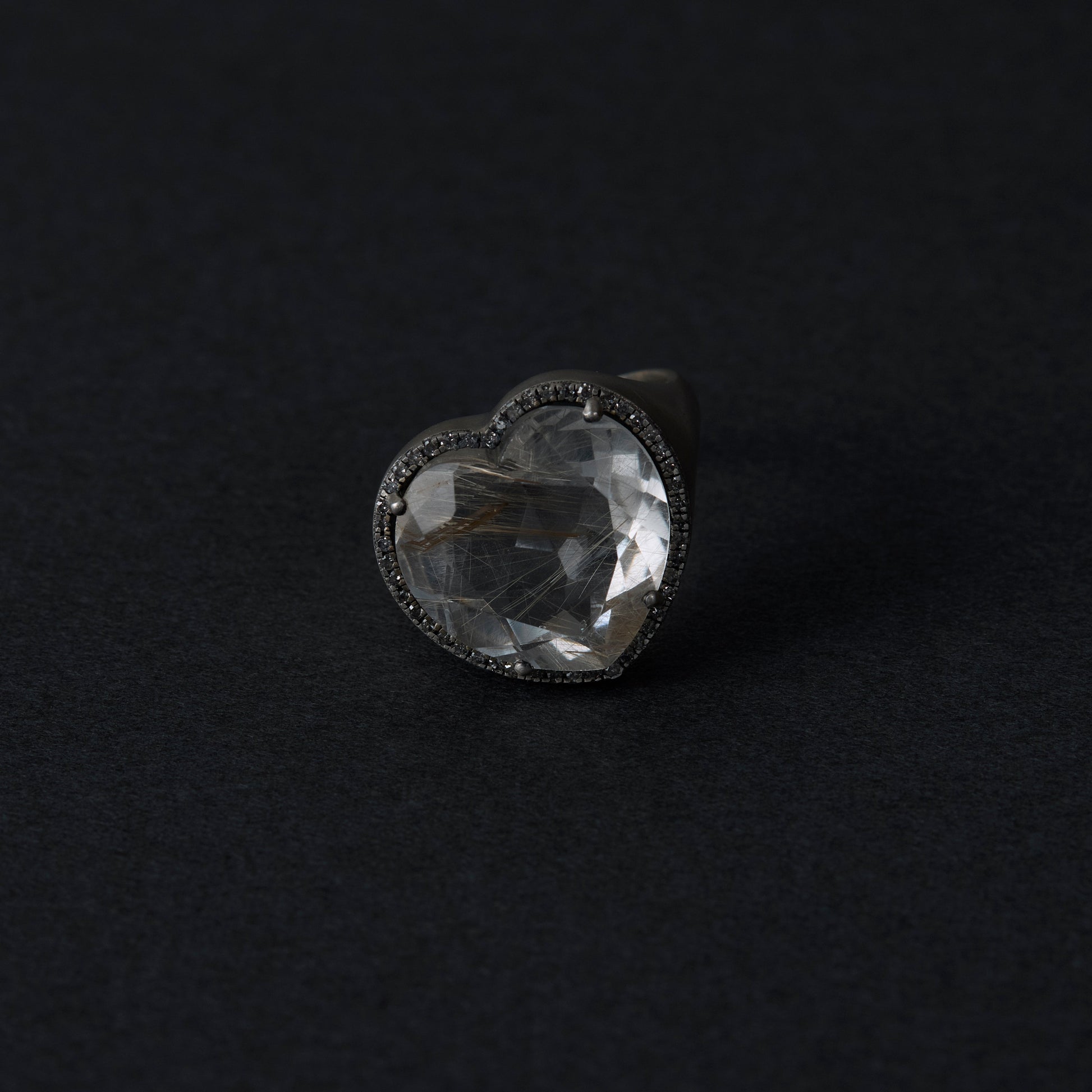 長年眠っていたデッドストックのストーンを、日本国内の職人の手によりモダンなカットに擦り上げました。パヴェダイヤモンドで取り巻き、爪部分にオキシダイズド加工をほどこすことでヴィンテージピースのような風合いに。丸みを帯びたボリュームシェイプのリングに成形しました。地金はリサイクルされたSilver925を使用、マットフィニッシュに柔らかな光沢を残しました。一点ものとなります。