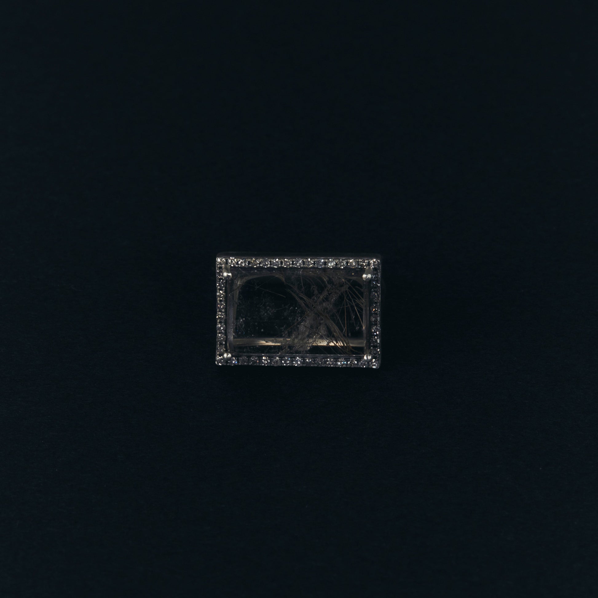 長年眠っていたデッドストックのストーンを、日本国内の職人の手によりモダンなカットに擦り上げました。パヴェダイヤモンドで取り巻き、爪部分にオキシダイズド加工をほどこすことでヴィンテージピースのような風合いに。丸みを帯びたボリュームシェイプのリングに成形しました。地金はリサイクルされたSilver925を使用、マットフィニッシュに柔らかな光沢を残しました。一点ものとなります。