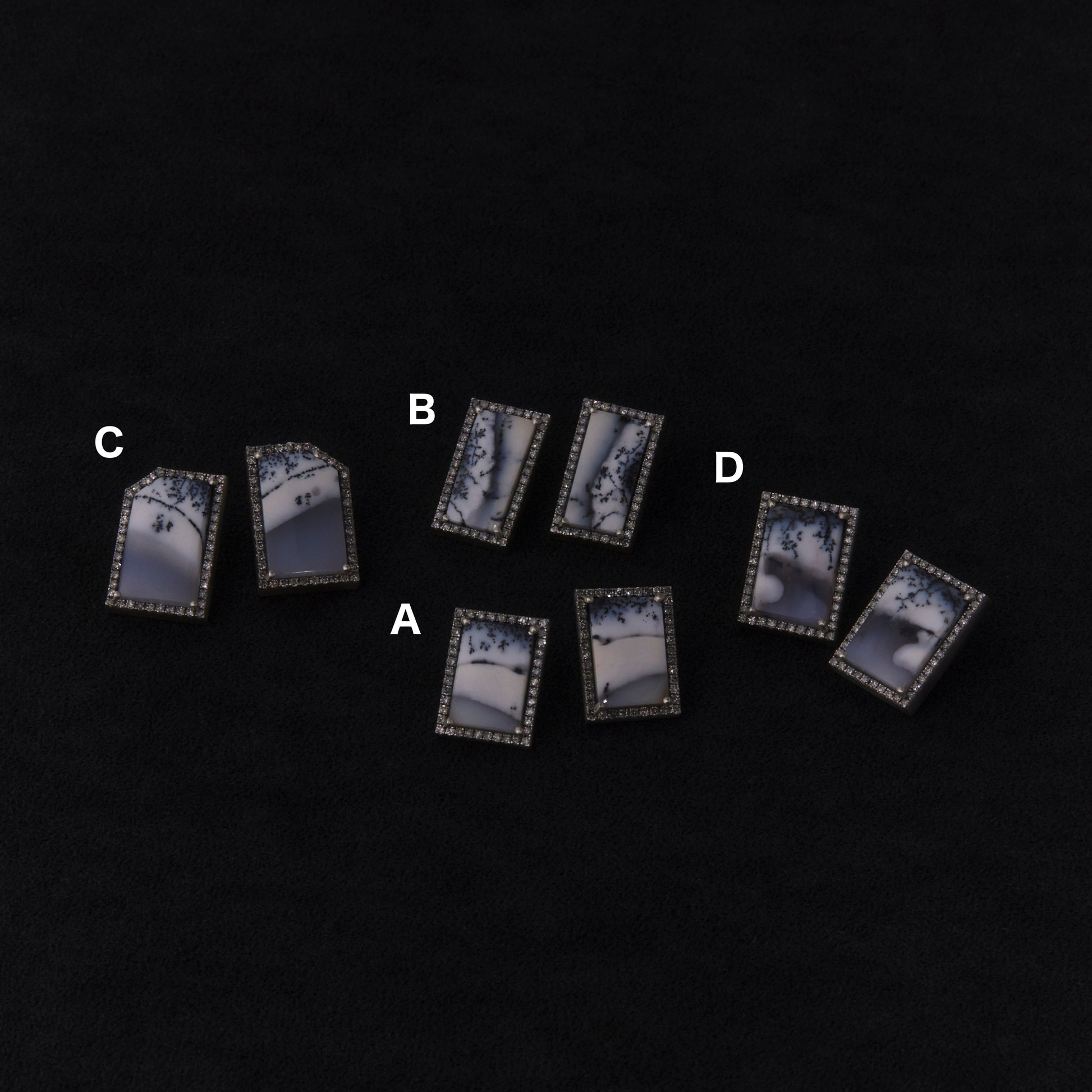 ストーン+枠サイズ:A 16.9mm × 12.3mm B 18.8mm × 10.9mm C 19.4mm × 12.9mm D 16.4mm × 12.9mm