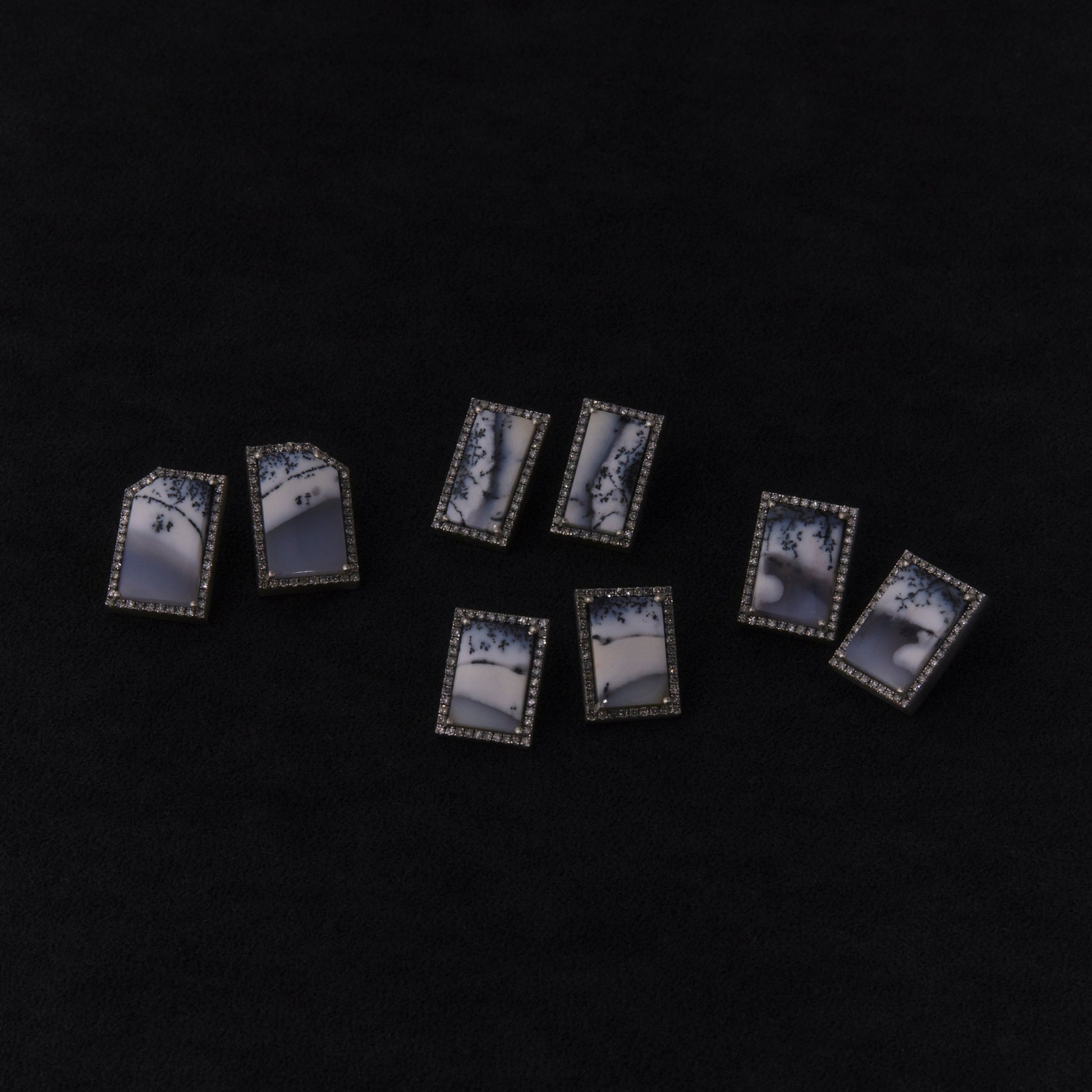 長年眠っていたデッドストックのストーンを使用しています。雪景色を映すデンドライトオパールをパヴェダイヤモンドで取り巻き、爪部分にオキシダイズド加工をほどこすことでヴィンテージピースのような風合いに。地金はリサイクルされたSilver925を使用、マットフィニッシュに柔らかな光沢を残しました。